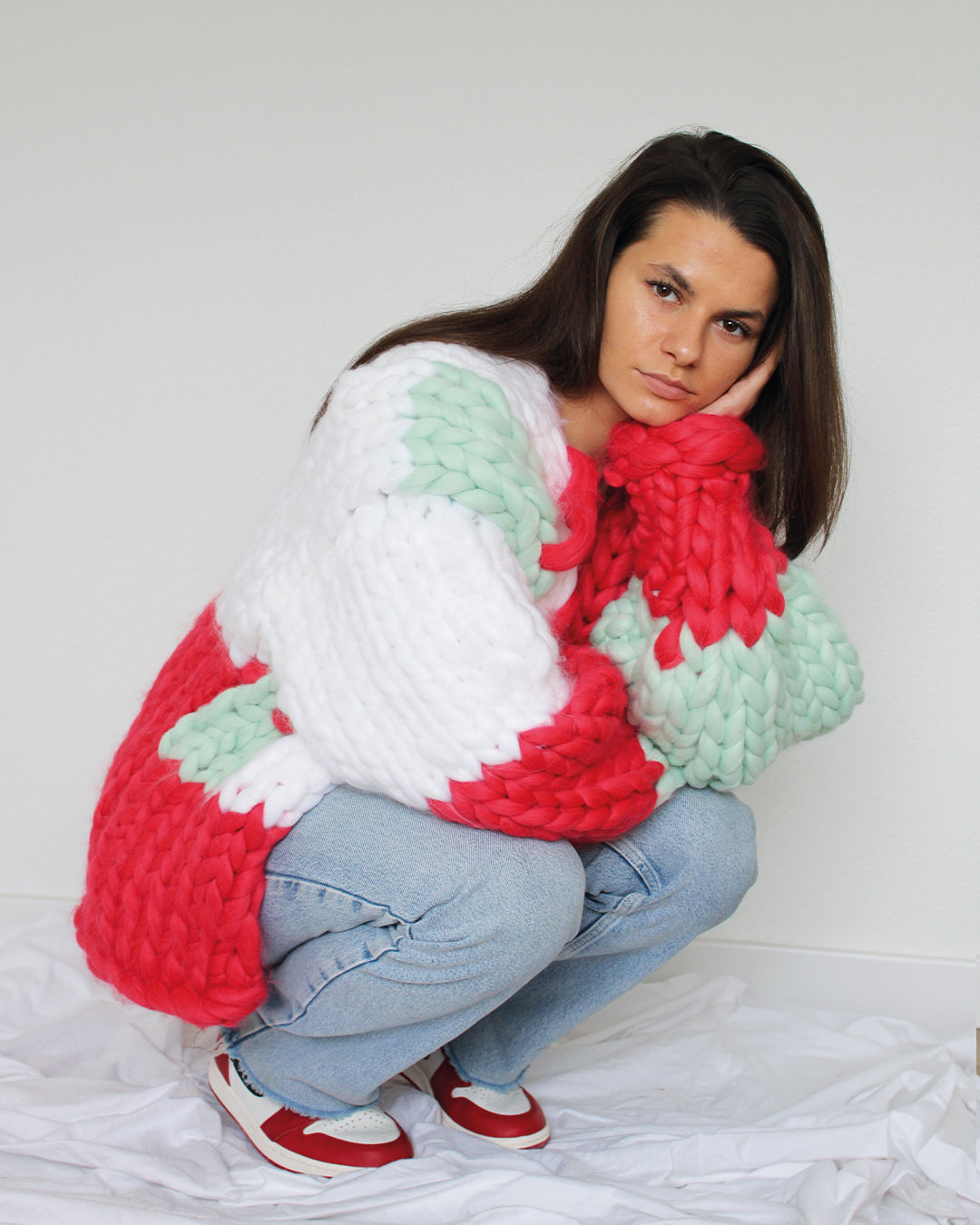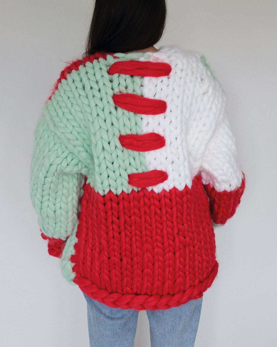 This cozy, 100% premium acrylic cardigan is a true wardrobe essential. Our Spring Collection cardigan design comes in a beautiful combination of colors, adding a touch of vibrancy to any outfit. The chunky knit is entirely handmade, showcasing the warmth and softness of premium wool. Featuring a relaxed, boxy fit and voluminous balloon sleeves, this cardigan offers both comfort and style, making it perfect for layering during cooler months. A timeless piece that combines craftsmanship with effortless chic.